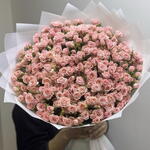 Доставили красивый букет, все в соответствии с фотографией, и доставка даже была чуть раньше запланированной. Сотрудники отвечали на русском языке, но если вы планируете добавлять открытку в заказ, лучше не пишите ее на русском, в тексте у нас были ошибки и почерк не самый красивый). А по цветам все супер, смело заказывайте!