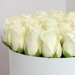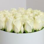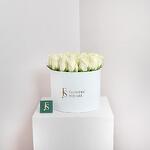 Подарите себе безмолвную красоту с коробкой великолепных белых роз, идеально подходящих для любого случая. Нежные лепестки и мягкий, сладкий аромат этих роз добавят элегантности вашему интерьеру.