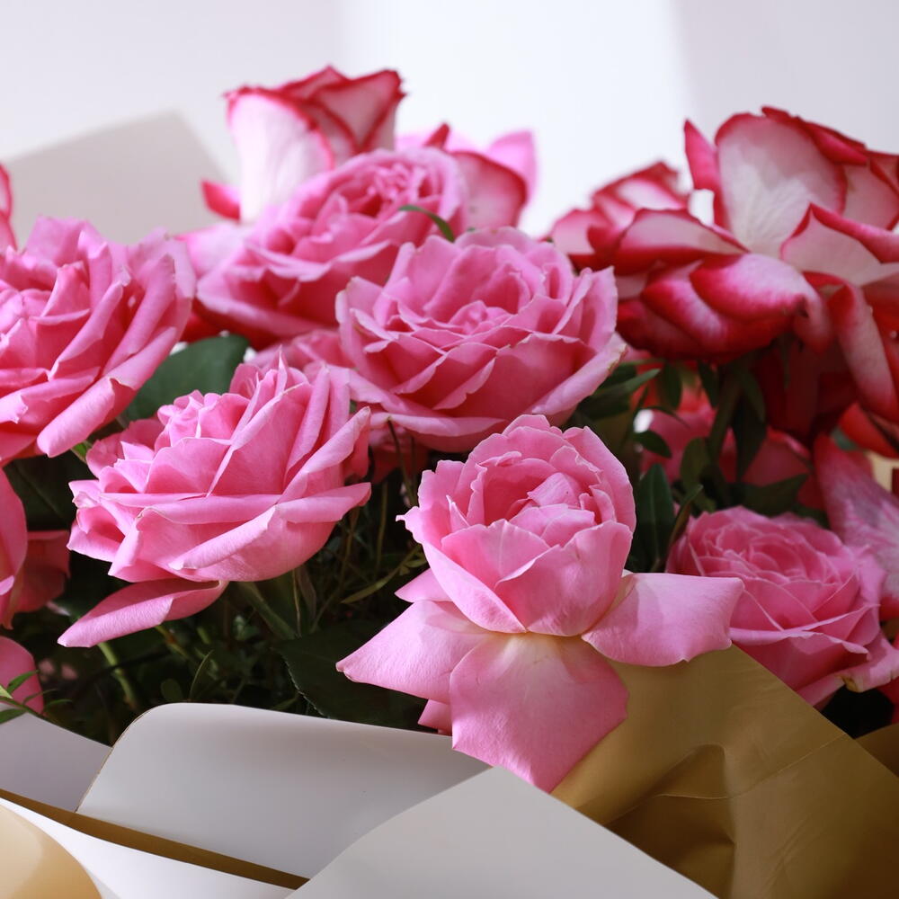 16 розовых роз в бело-золотой упаковочной бумаге — красивый и продуманный подарок, чтобы выразить любовь и привязанность особому человеку. Это классический и романтичный жест, который наверняка заставит его или её почувствовать себя особенным и любимым. Bouquet includes: Розовые розы: 100 Золотая и белая упаковочная бумага Flower Type - Пополняйте воду часто. - Полностью меняйте воду каждые 2-3 дня. - Обрежьте как минимум полдюйма стебля у ваших цветов перед тем, как поставить их в вазу, и каждый раз при смене воды. - Держите цветы подальше от источников тепла и яркого света. - Избегайте размещать цветы рядом с созревающими фруктами или овощами, особенно с бананами и яблоками. Note: Цветы могут простоять до 7 дней при соблюдении приведённых выше рекомендаций по уходу; цвет цветов может варьироваться в зависимости от сезона.
