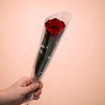 Ощутите простую элегантность этого моно-букета, в котором одна потрясающая роза. Отобранная вручную за своё совершенство, эта роза воплощает чистую привязанность и восхищение, делая её идеальным жестом для любого случая. Её сияющая красота непременно покорит и очарует получателя.
