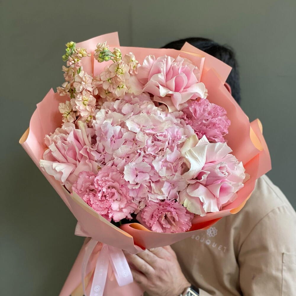 Hydrangea - 1 шт. Lisianthus - 2 шт. rose - 4 шт. mathiola - 2 шт.