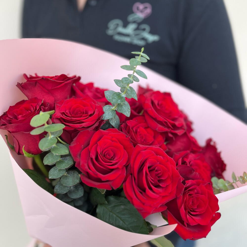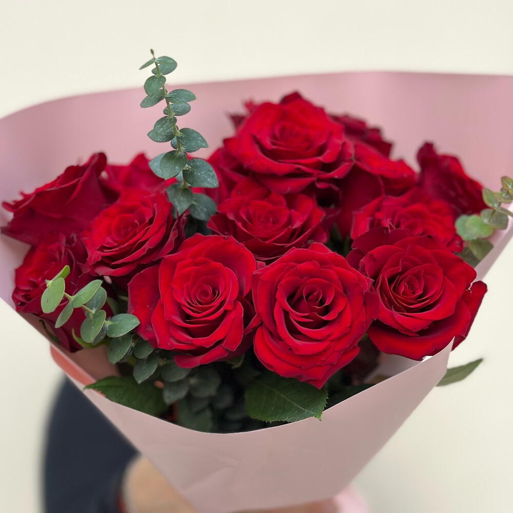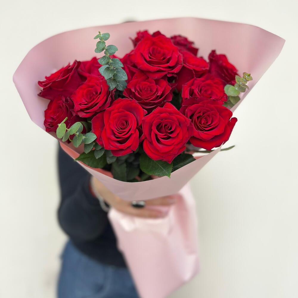 Red rose - 15 шт. Eucalyptus - 3 шт.