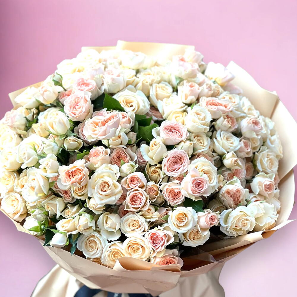 spray rose pink - 8 шт. персиковая кустовая роза - 8 шт.