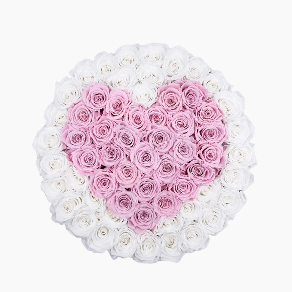 White rose - 38 шт. round box - 1 шт. pink roses - 25 шт.