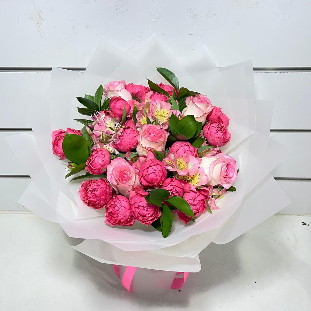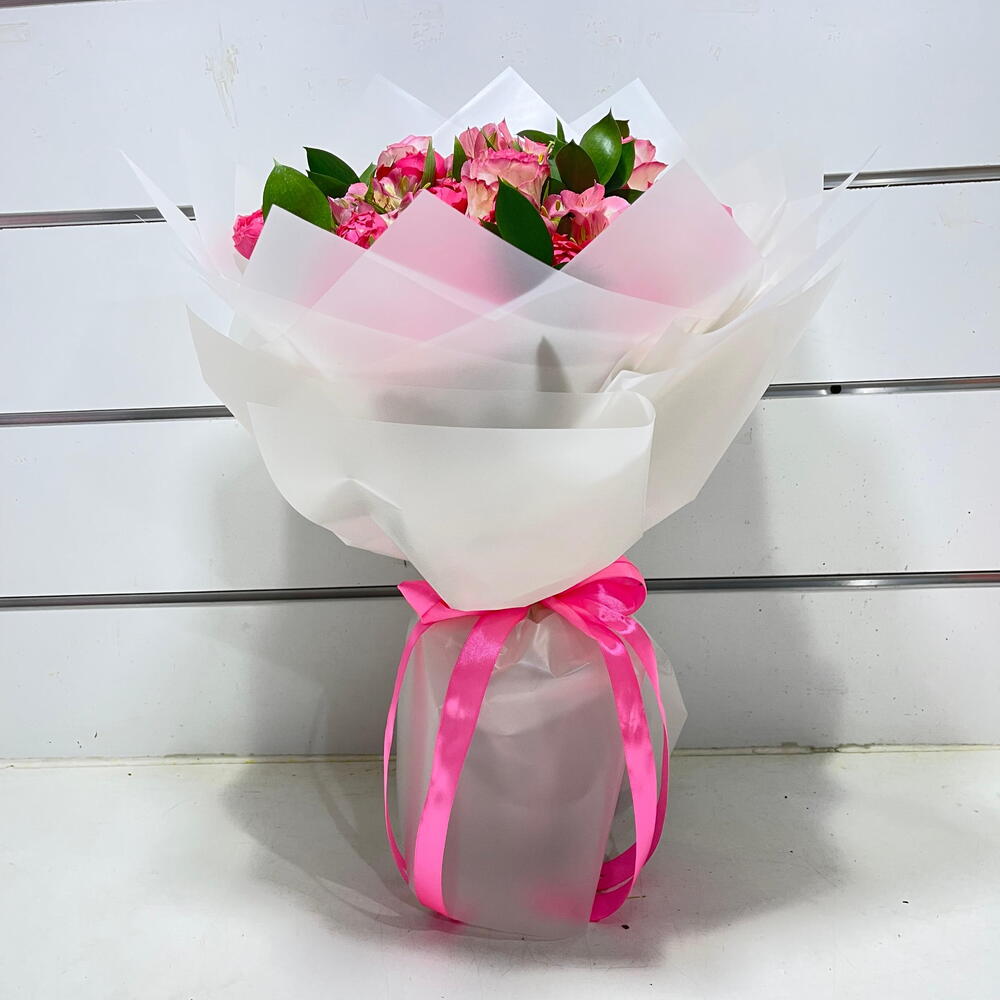 Alstroemeria - 3 шт. роза садового распыления - 5 шт. pink roses - 5 шт. спасение - 5 шт.