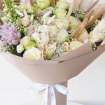 Композиция Pastel Harmony — это нежная роскошная цветочная композиция с пастельными розами и изящными сезонными цветами. Ручная работа придаёт ей лёгкость и естественность; эта композиция в высокой вазе приносит тепло и мягкие оттенки в элегантные жилые пространства. Идеальный выбор для изысканного подарка и премиального домашнего декора.