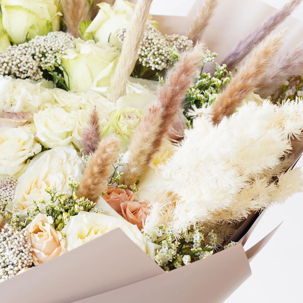 Композиция Pastel Harmony — это нежная роскошная цветочная композиция с пастельными розами и изящными сезонными цветами. Ручная работа придаёт ей лёгкость и естественность; эта композиция в высокой вазе приносит тепло и мягкие оттенки в элегантные жилые пространства. Идеальный выбор для изысканного подарка и премиального домашнего декора.