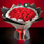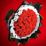 Red ribbon - 1 шт. red roses - 55 шт. белая сетчатая упаковка - 1 шт. черно-золотые обёртки - 8 шт.