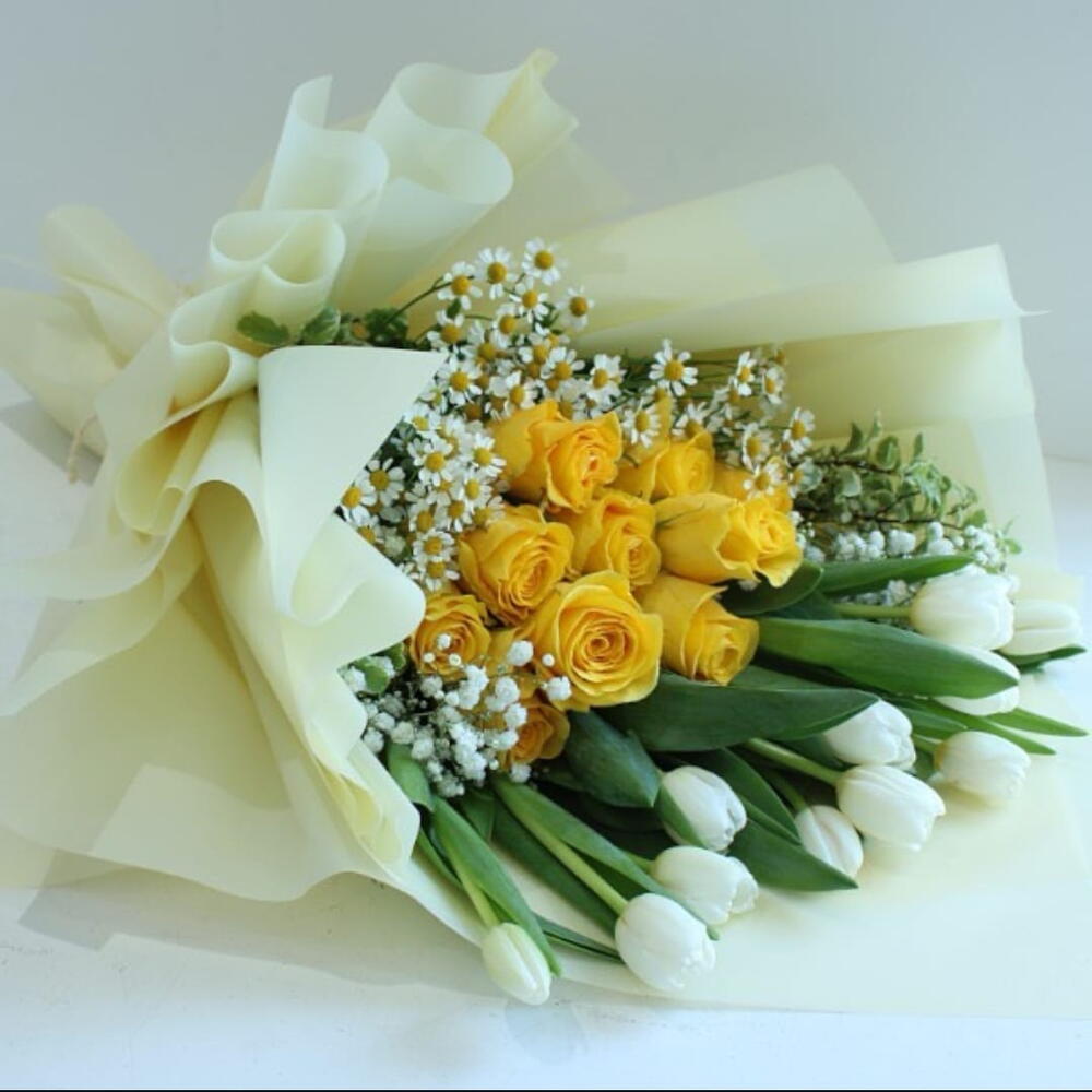 Окунитесь в вневременную элегантность нашего моно-букета, тщательно изготовленного вручную из 10 восхитительных роз, 10 ярких тюльпанов и 10 нежных астр. Композиция красиво упакована в набор из 5 обёрток, излучая утонченность и изящество. В комплект входит персональная открытка, что делает его идеальным сюрпризом для ваших близких.