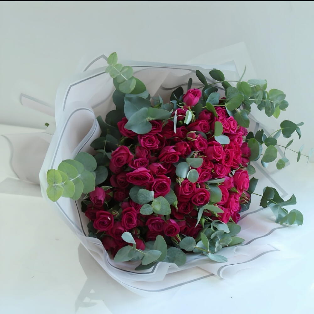 Завораживающий каскад из 20 ярких кустовых роз, насыщенных цветом и ароматом, идеально подходит для празднования самых сладких моментов жизни.