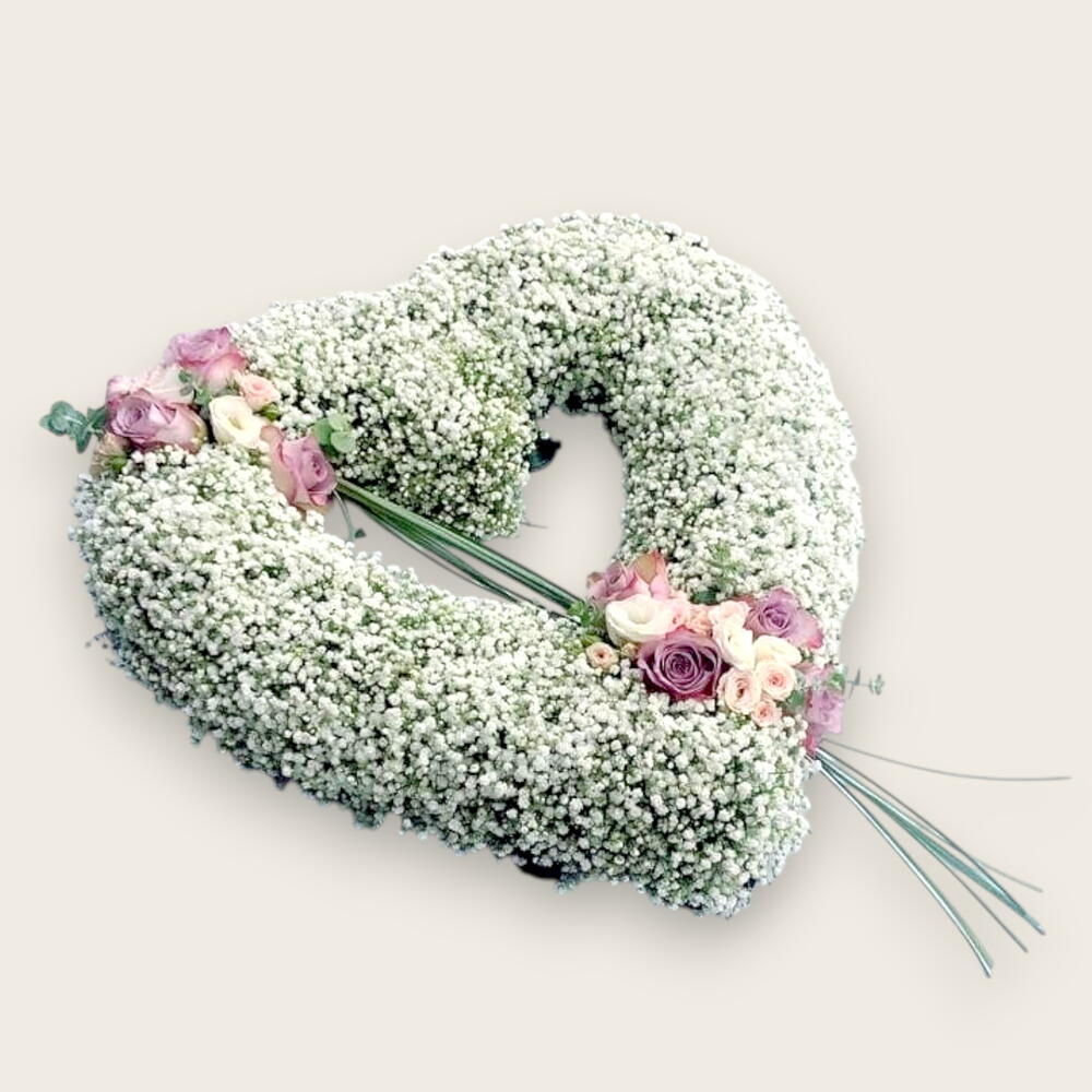 Яркое романтичное сердце, созданное из разнообразных цветов, пышущее цветом и ароматом.