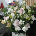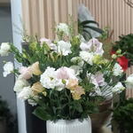 green trick - 5 шт. розовые стебли эустомы - 5 шт. лизиантус белый стебель - 5 шт.