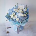 Нежный букет из 5 синих гортензий, 3 белых фаленопсисов, 5 белых лизиантусов и 2 белых маттиол, дополненных мягкими наполнителями. Успокаивающее сочетание синих и белых цветов создает элегантную и изысканную композицию — идеально для выражения любви, благодарности или празднования особых моментов. ✨ Подходит для: Юбилеев, дней рождения, соболезнований, элегантных подарков, подарков для неё, Flowwow ОАЭ.