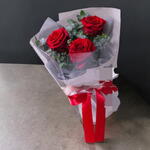 3 красные розы с эвкалиптом