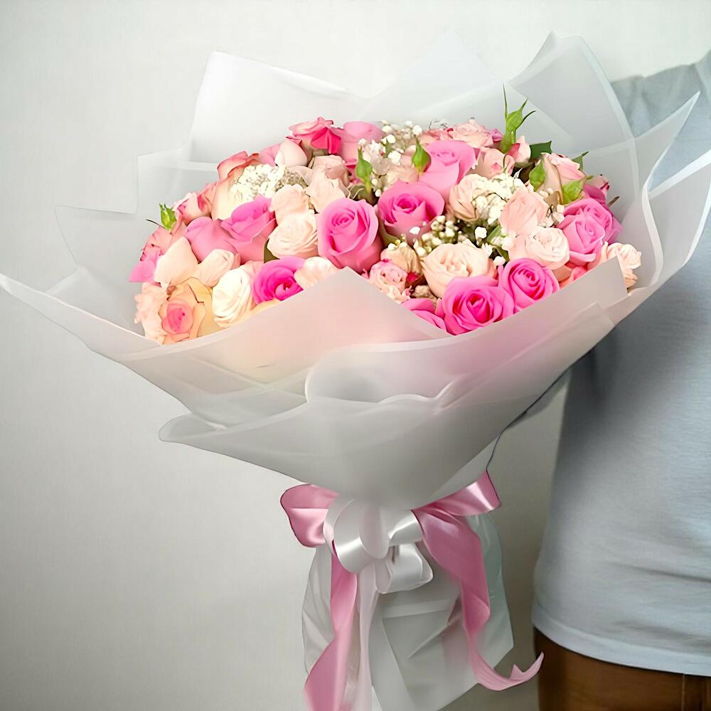 Премиальный розово-кремовый букет роз