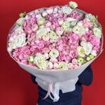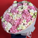 Eustoma - 12 шт. hydrangeas - 9 шт. ranunculus - 10 шт. садовые розы - 20 шт.