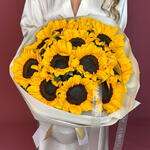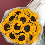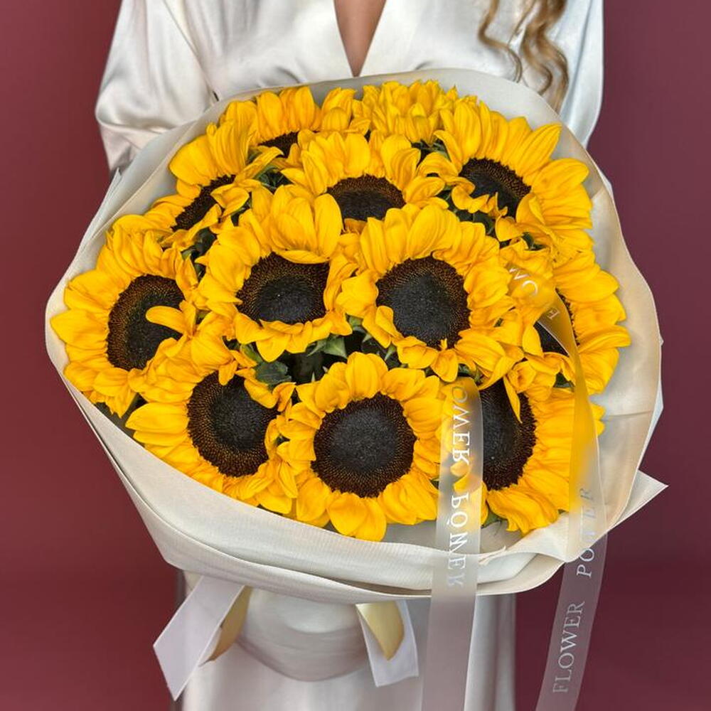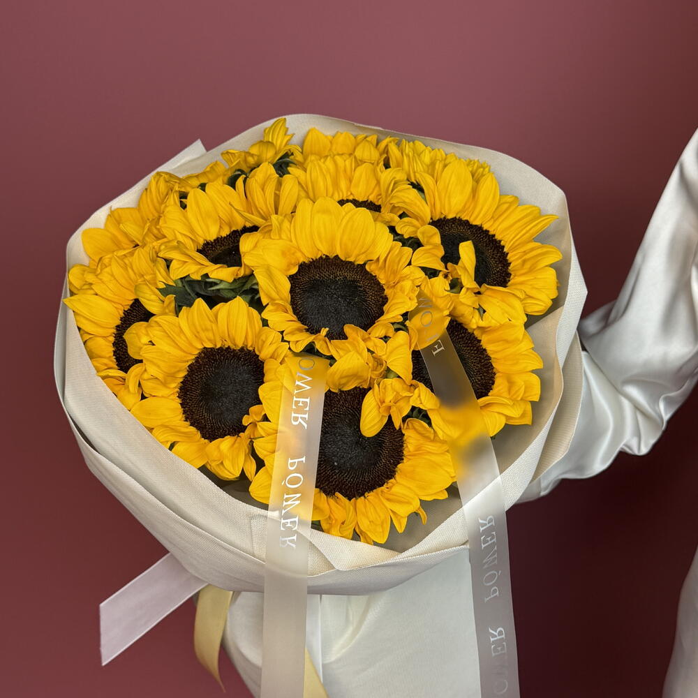 Смелый и радостный букет подсолнухов — словно взрыв солнечного света в ваших руках. Олицетворяя позитив, тепло и счастье, эти золотые цветы идеально подходят для дней рождения, подарков в знак благодарности или просто чтобы сделать чей-то день ярче. Яркий, жизнерадостный и полный энергии — точно такой же, как человек, которому вы его дарите.