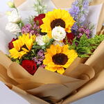 Букет смешанных цветов с подсолнухами
