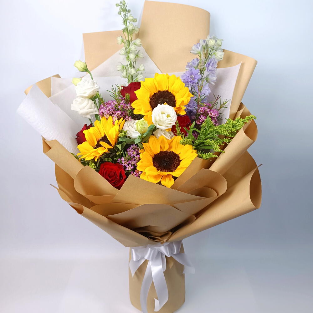 Букет смешанных цветов с подсолнухами