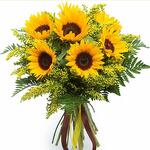 Solidago - 5 шт. Sunflower - 7 шт. стеклянная ваза 12x25 - 1 шт. кожаное веселье - 6 шт.