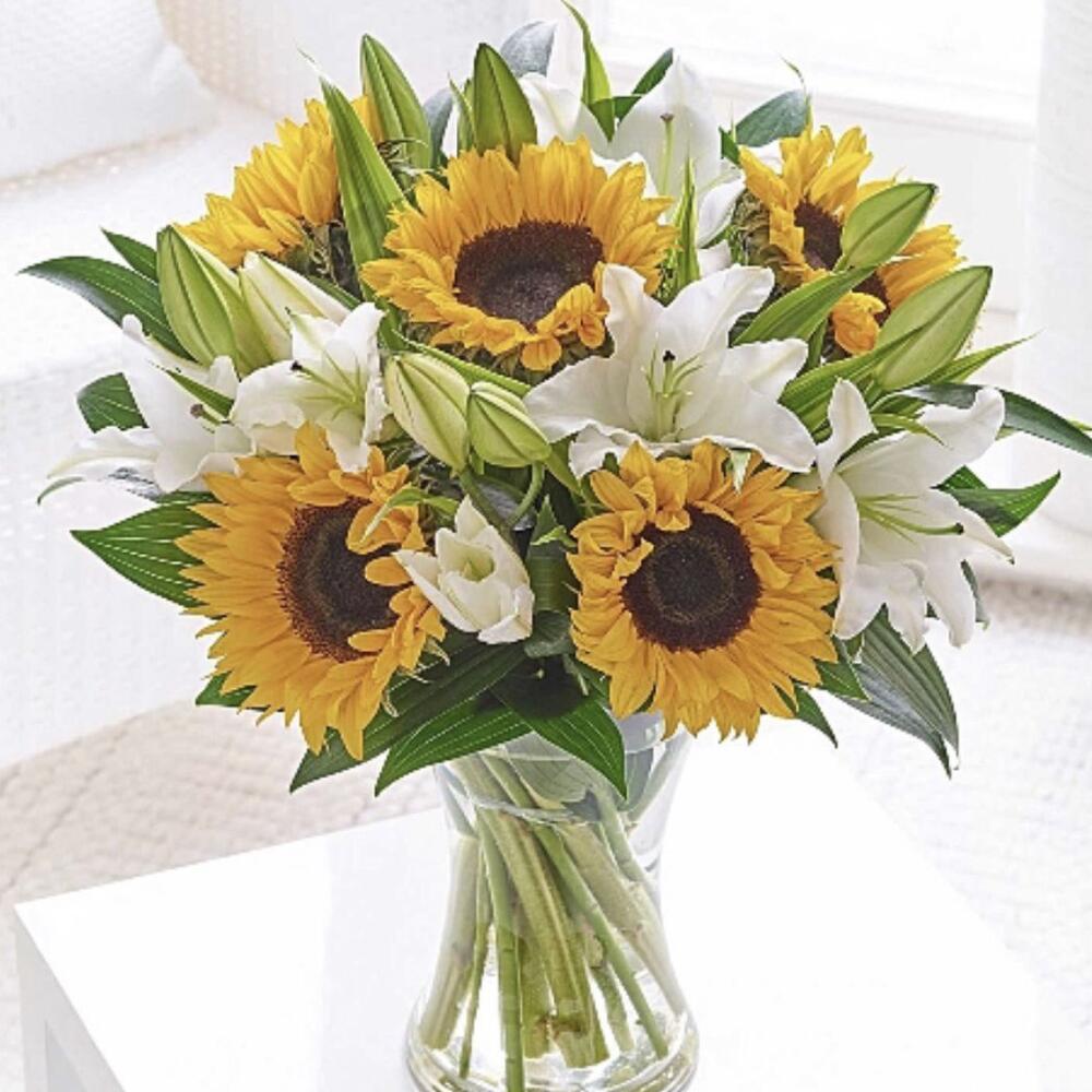Sunflower - 5 шт. lily white - 4 шт. стеклянная ваза 12x25 - 1 шт.