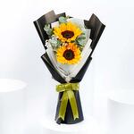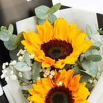 Жизнерадостная пара золотистых подсолнухов, излучающих тепло, позитив и радость. Собранный вручную со свежей зеленью, этот простой, но яркий букет идеально подходит, чтобы осветить чей-то день, отпраздновать дружбу или подарить лучик солнца по любому поводу.