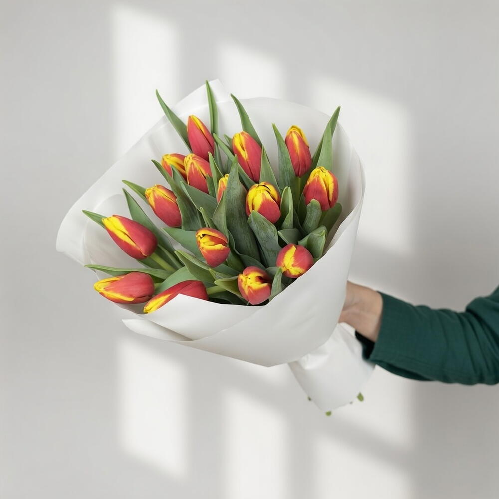 «Солнечная искра» — это жизнерадостный монобукет из пятнадцати ярких красных и желтых тюльпанов, расположенных в компактной, но выразительной композиции. Огненно-красные тона в сочетании с солнечными желтыми создают живой контраст, символизирующий радость, тепло и позитивную энергию. Этот букет станет приятным сюрпризом не только на Международный женский день, но и в любой обычный день, заслуживающий ярких красок. Свежие весенние цветы мгновенно оживляют атмосферу и дарят ощущение легкости и счастья. Идеально подходит в качестве подарка партнеру, матери, подруге, дочери, учителю или коллеге, эта композиция передает сияющее послание заботы и признательности. Свежий, красочный и воодушевляющий — небольшой букет с большим эмоциональным воздействием.