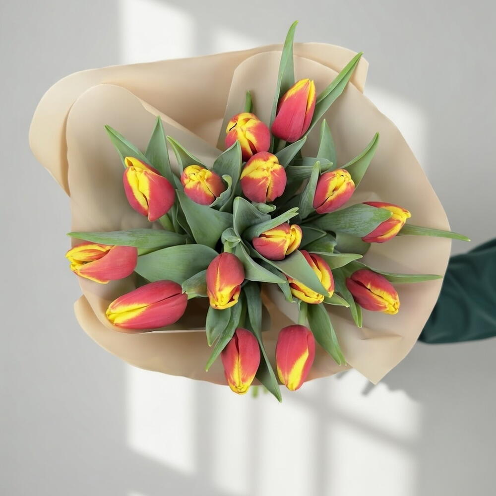 красные & жёлтые тюльпаны - 15 шт.