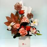 Яркая акриловая белая коробка, украшенная 3 белыми тюльпанами, 7 оранжевыми розами, 3 веточками амми, зеленью аралии и 5 рускусами — свежая, жизнерадостная композиция, которая привнесет современный шарм и солнечную энергию в любую комнату. Чистые линии и яркие оранжевые акценты делают эту коробку идеальным подарком или украшением интерьера в ярком стиле. ✨ Подходит для: Подарков на день рождения, цветов в знак благодарности, новоселья, радостных сюрпризов, Flowwow ОАЭ, подарков для неё.