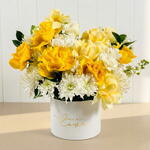 Лучистые жёлто-розовые тона и насыщенные зелёные оттенки создают солнечный взрыв энергии в этой композиции, вдохновлённой сельской местностью. Рускус (8 шт.), Роза Brighton (5 шт.), Лизиантус белый (2 шт.), Хризантема Pina Colda (8 шт.), Роза Magic Avalanche (5 шт.), Блад Pistachio (3 шт.) теги: пастельный цветочный букет, солнечный цветочный подарок, яркий букет ОАЭ