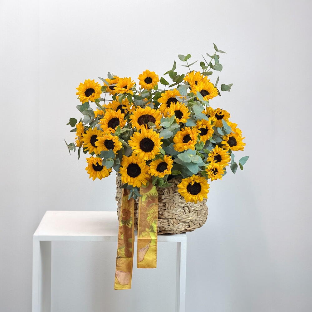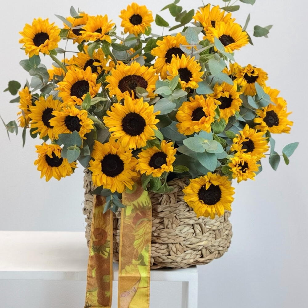 Sunflower - 20 шт. eucalyptus leaves - 20 шт. корзина - 1 шт.