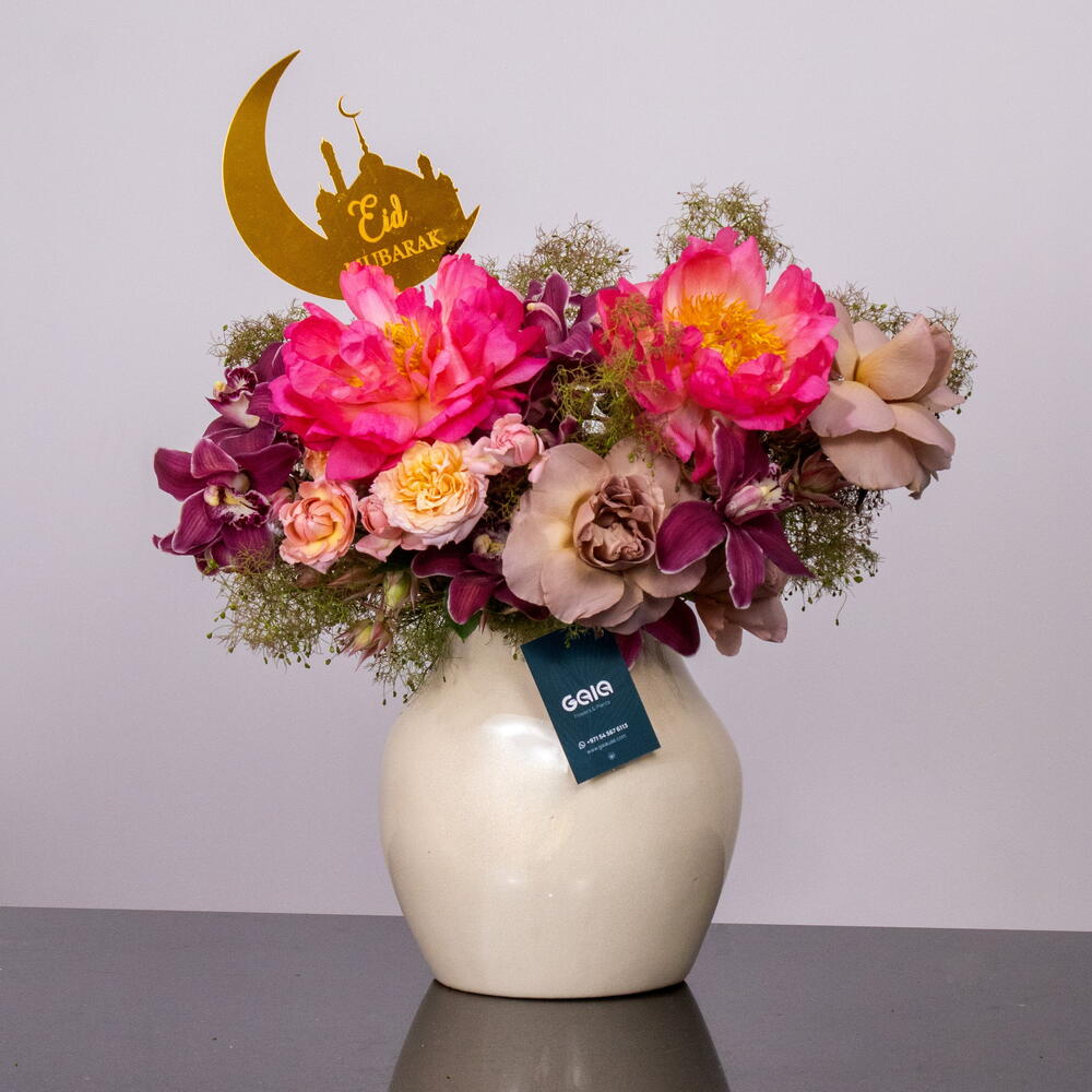 Отпразднуйте Курбан-байрам радостно и наполненно, привнеся красоту природы прямо к себе домой. Ид Мубарак! 🌙✨ В этот праздник позвольте Gaia Flowers добавить нотку элегантности и радости в ваши торжества с помощью наших потрясающих букетов цветов. И знаете что? Мы предлагаем невероятную скидку 50%! Это наше уникальное предложение, которого ещё никогда не было! Эта роскошная композиция сочетает в себе вечную красоту пионов и очарование роз, и всё это в классической хрустальной вазе.