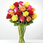 Дарите счастье любому пространству с этим ярким букетом разноцветных роз, элегантно оформленных в прозрачной стеклянной вазе. Каждый бутон рассказывает свою историю — красный символизирует любовь, жёлтый — дружбу, оранжевый — энтузиазм, а розовый — восхищение. Вместе они создают живой взрыв цвета, который мгновенно поднимает настроение и делает этот букет идеальным подарком на дни рождения, праздники или просто чтобы поднять кому‑то настроение. Чтобы розы дольше оставались свежими, поставьте вазу в прохладное место вдали от прямых солнечных лучей и сквозняков. Меняйте воду каждые 2–3 дня, слегка подрезайте стебли под углом и удаляйте листья ниже уровня воды. Эта радостная композиция — не просто цветы, а букет эмоций, собранных в гармонии.