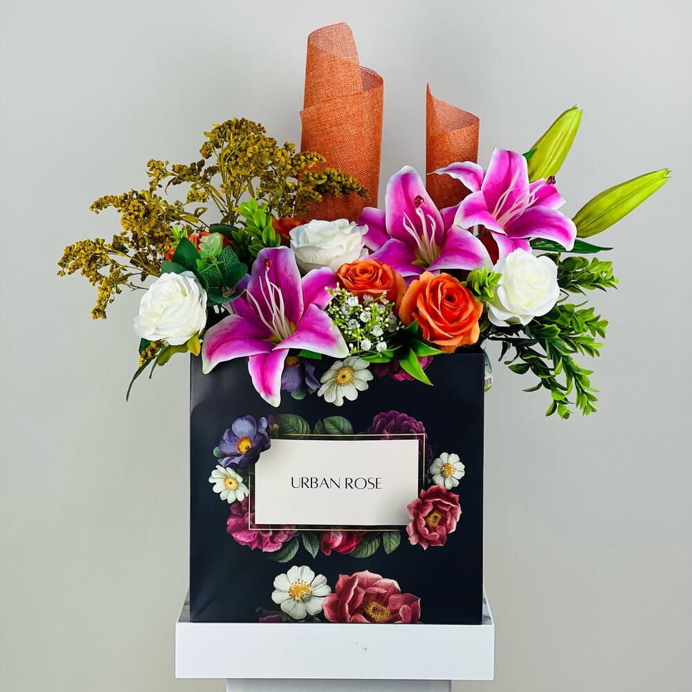 Погрузитесь в мир цветочного очарования с нашим изысканным Florists Special. Этот вручную составленный букет состоит из одного потрясающего стебля розовой лилии, красиво сочетающегося с миксом из семи чарующих роз. Композиция дополнена тремя стильными аксессуарами, два из которых — яркого, сверкающего оранжевого цвета. Вся эта магия аккуратно упакована в изысканную сумку Urban Rose Bag для придания утончённости. Настоящее пиршество для глаз, этот букет обещает добавить всплеск цвета и нотку элегантности в любое место, где бы он ни находился. Оживите своё окружение с этим Florists Special!