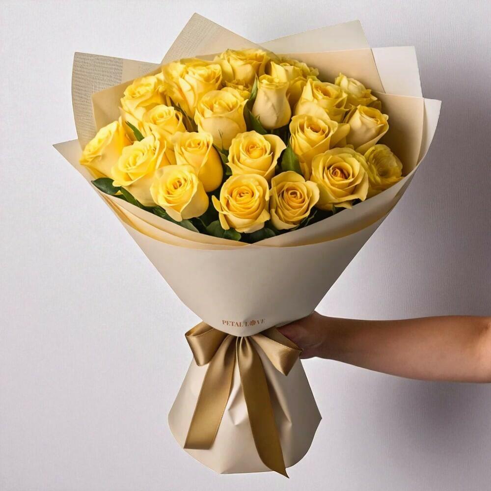 Подарите кому-то радость нашим букетом Sunshine Flower, яркой композицией из 30 жизнерадостных желтых роз, выращенных на солнечных полях Кении. Этот жизнерадостный букет — символ радости, дружбы и новых начинаний, что делает его идеальным подарком на день рождения, для поздравлений или просто чтобы подарить немного солнечного настроения. Чтобы цветы дольше сохраняли красоту, поместите стебли в чистую воду сразу после получения и держите их подальше от прямого тепла или солнечных лучей. Меняйте воду каждые 2–3 дня и слегка подрезайте стебли для максимально свежего вида. Яркие цвета: Живые желтые розы приносят вспышку солнца и радости в любое пространство. Премиальное качество: Произведенные в известных регионах выращивания роз в Кении, эти розы славятся своим исключительным качеством, насыщенным цветом и длительной свежестью. Символ радости и дружбы: Желтые розы символизируют дружбу, радость и новые начинания, делая их жизнерадостным и воодушевляющим подарком. Универсальный подарок: Подходит для самых разных случаев — от дней рождения и поздравлений до приветствия новых этапов жизни и выражения признательности.