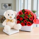 Teddy bear - 1 шт. red roses - 10 шт.