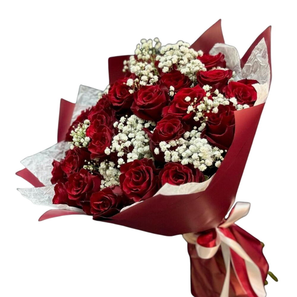 Red rose - 24 шт. стебель гипсофилы - 3 шт.