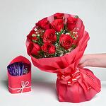 Погрузитесь в чарующую элегантность этого моно-букета — гармоничного сочетания 10 роскошных красных роз, художественно дополненных 2 веточками воздушной белой гипсофилы. В букете спрятано 5 кусочков восхитительного шоколада Dairy Milk, добавляющих сладкий сюрприз этому изысканному творению. Этот букет — идеальный знак любви, тепла и радости для любого повода.