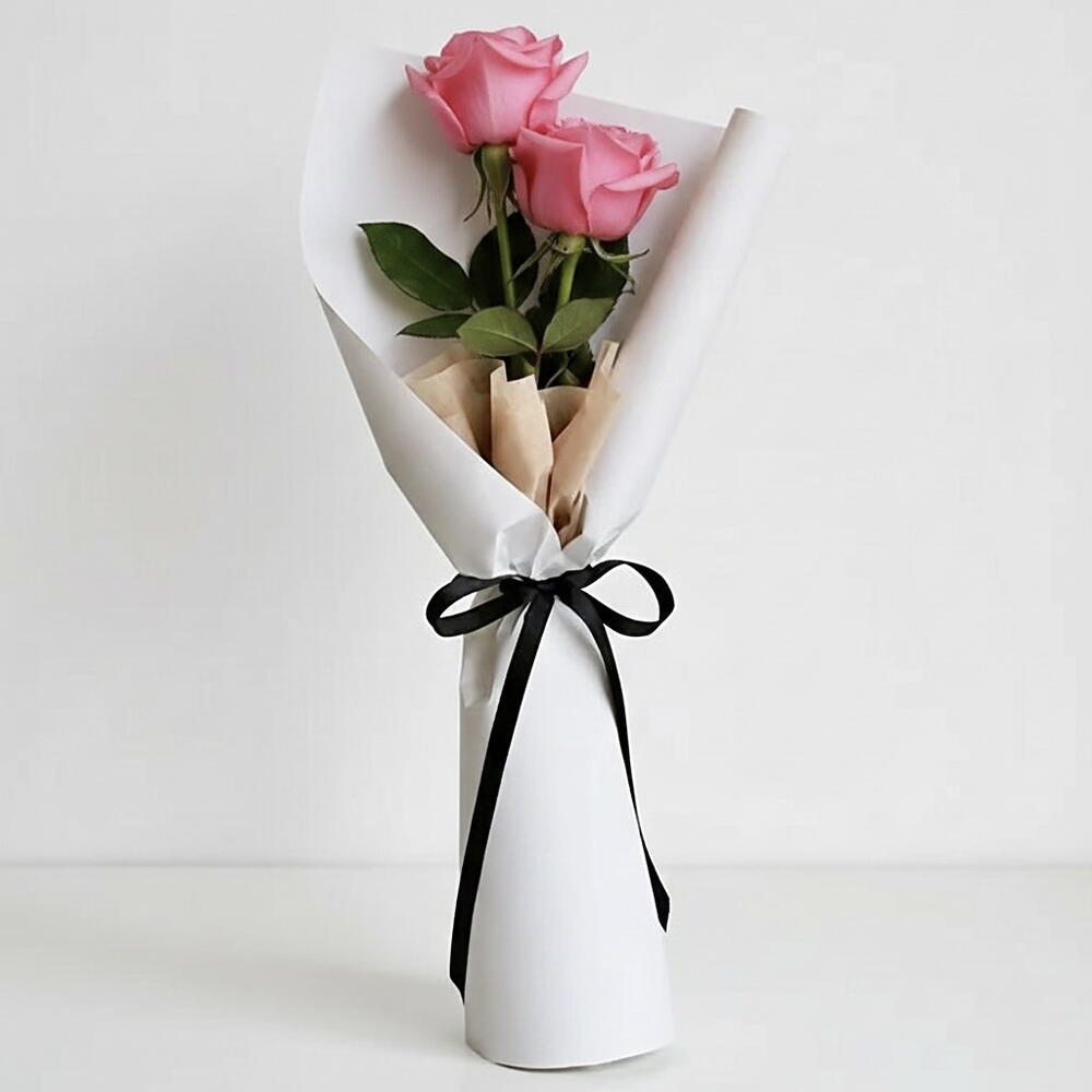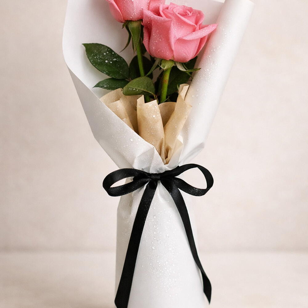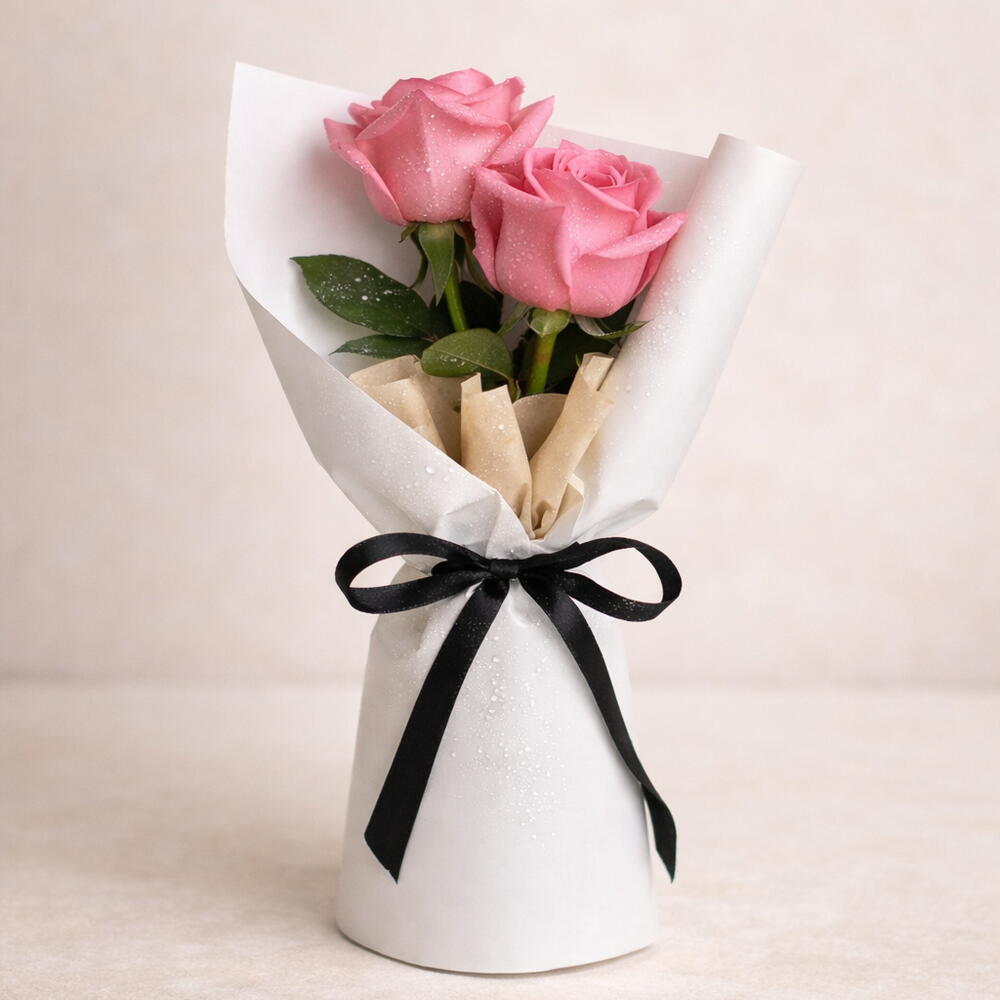 Нежный букет из 2 свежих нежно-розовых роз, символизирующий восхищение и изящество. Идеально подходит для дней рождения, подарков в знак благодарности и нежных романтических моментов.