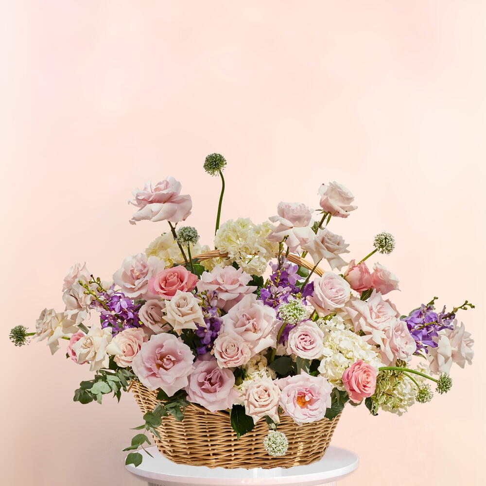 Hydrangea - 6 шт. Lisianthus - 5 шт. roses - 30 шт. мукара - 12 шт. эвкалипт - 10 шт.