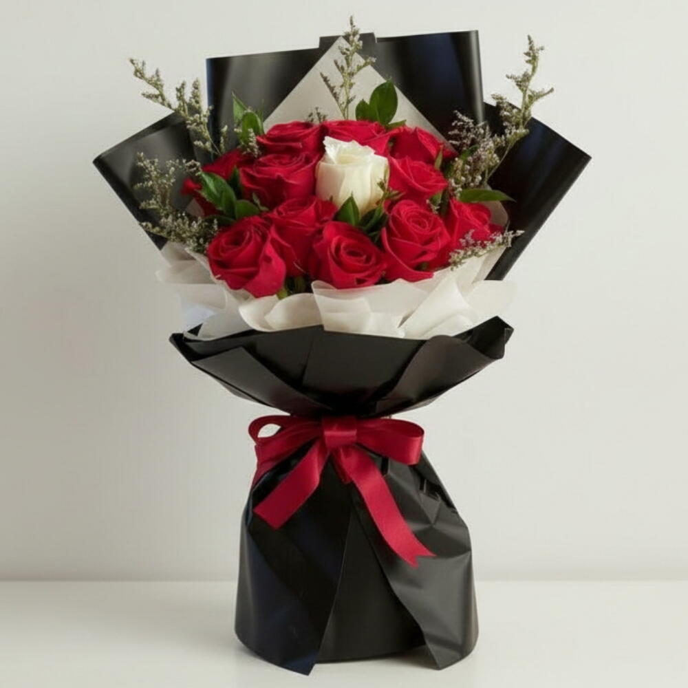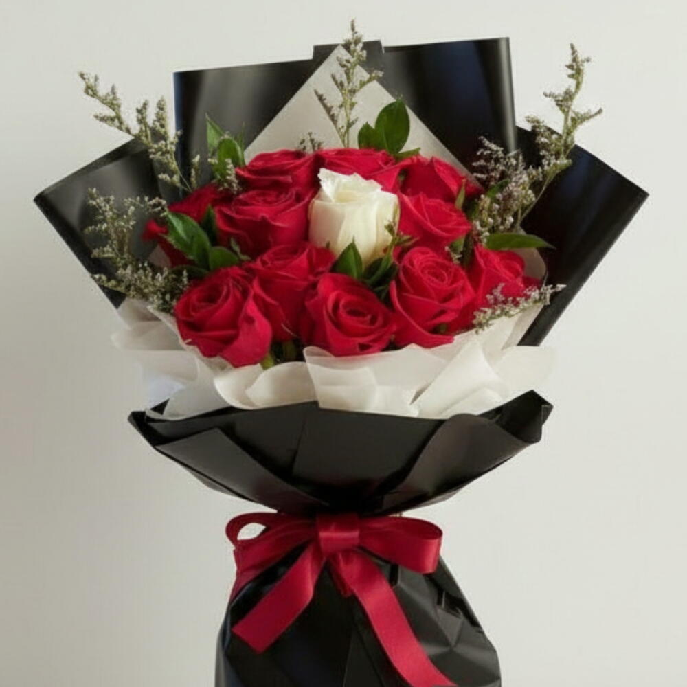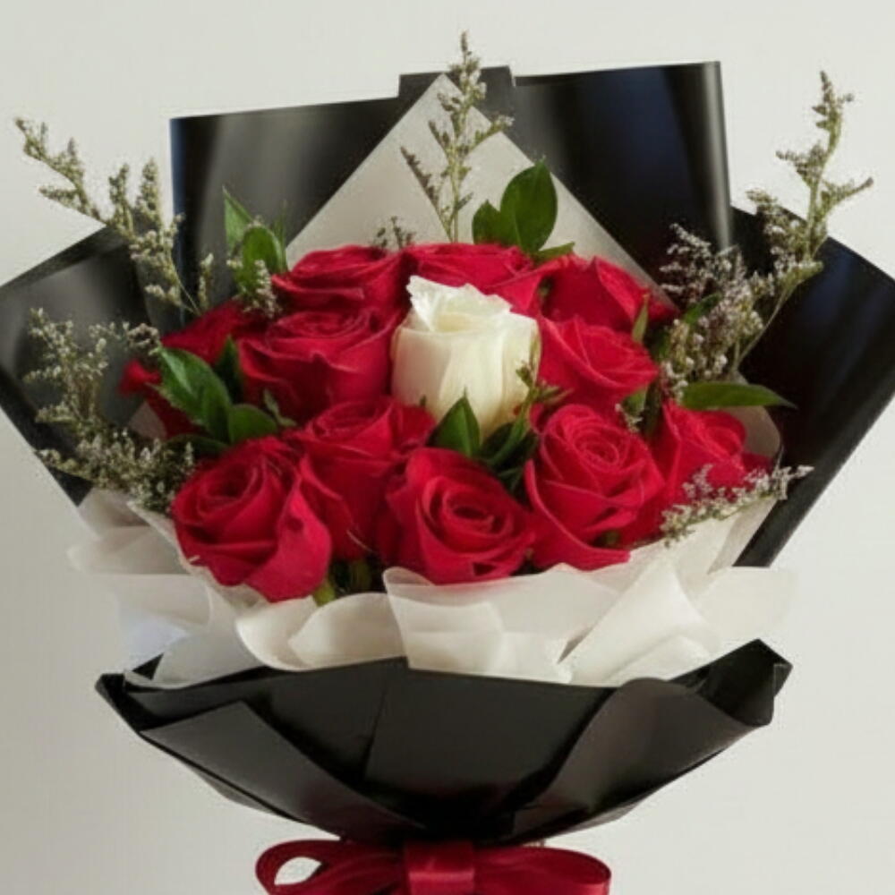 Букет, который говорит громче слов: 10 насыщенно-красных роз, символизирующих страстную любовь, окружают одну чисто-белую розу в сердце, олицетворяющую искренность и вечную преданность. Этот букет, искусно собранный вручную с использованием пышных наполнителей и элегантной упаковки, — поэтическое выражение вечной привязанности. Каждый цветок собран из свежих цветов и искусно оформлен, создавая поразительный контраст, который привлекает внимание и растапливает сердца. Идеально подходит для годовщин, предложений руки и сердца или просто чтобы сказать «ты тот самый». ✨ Подробности: ✓ 10 премиальных красных роз + 1 центральная белая роза ✓ Элегантные наполнители для объема и изящества ✓ Упакован вручную в стильную бумагу и атласную ленту ✓ Символ любви, единства и вечной связи Примечание: Упаковка и стиль наполнителей могут незначительно меняться в зависимости от сезона. «Скажите это с любовью — закажите свой букет из красно-белых роз сегодня!» «Пусть одна белая роза расскажет историю вашего сердца — закажите сейчас!» «Сделайте каждый жест незабываемым — добавьте в корзину и пошлите цветущую любовь!»