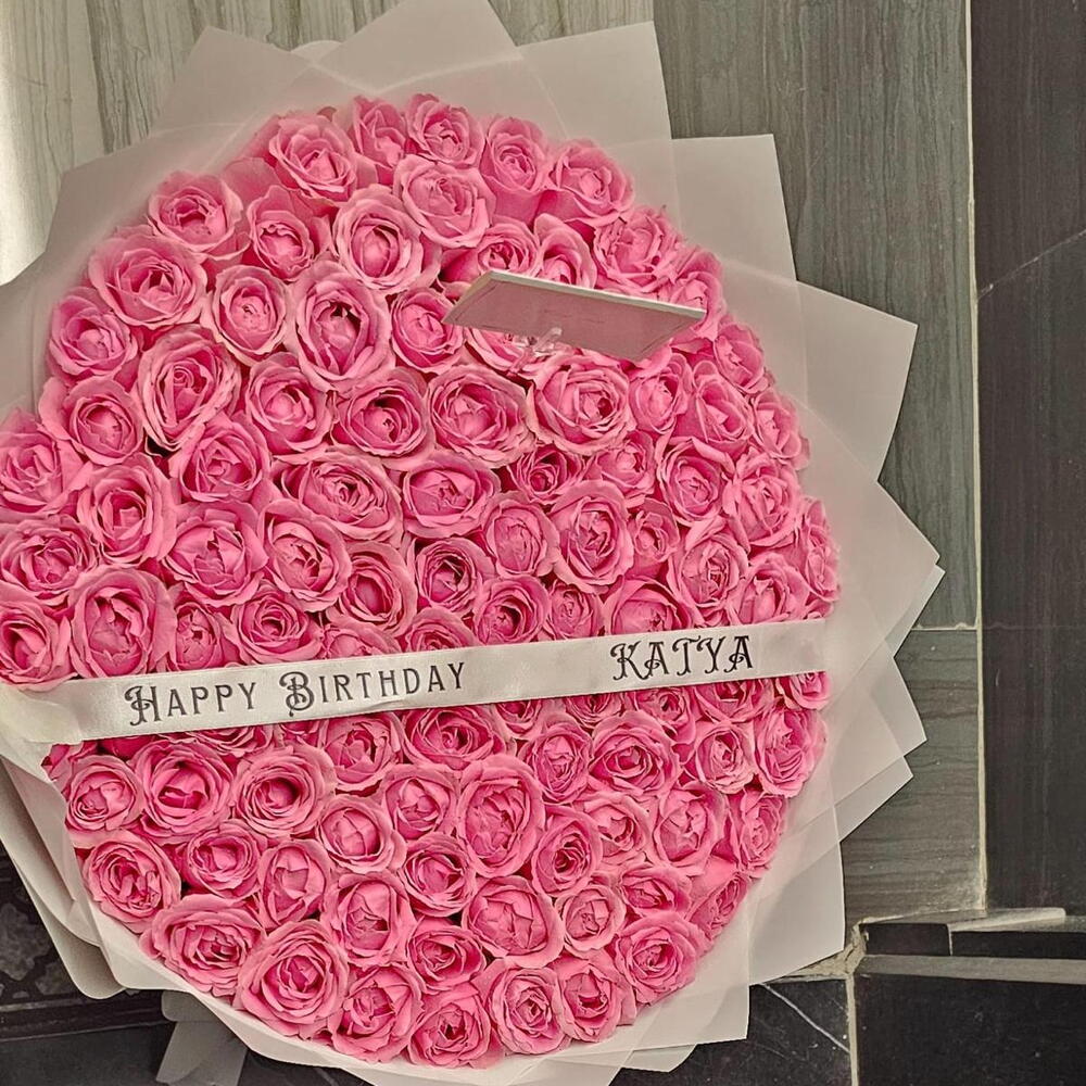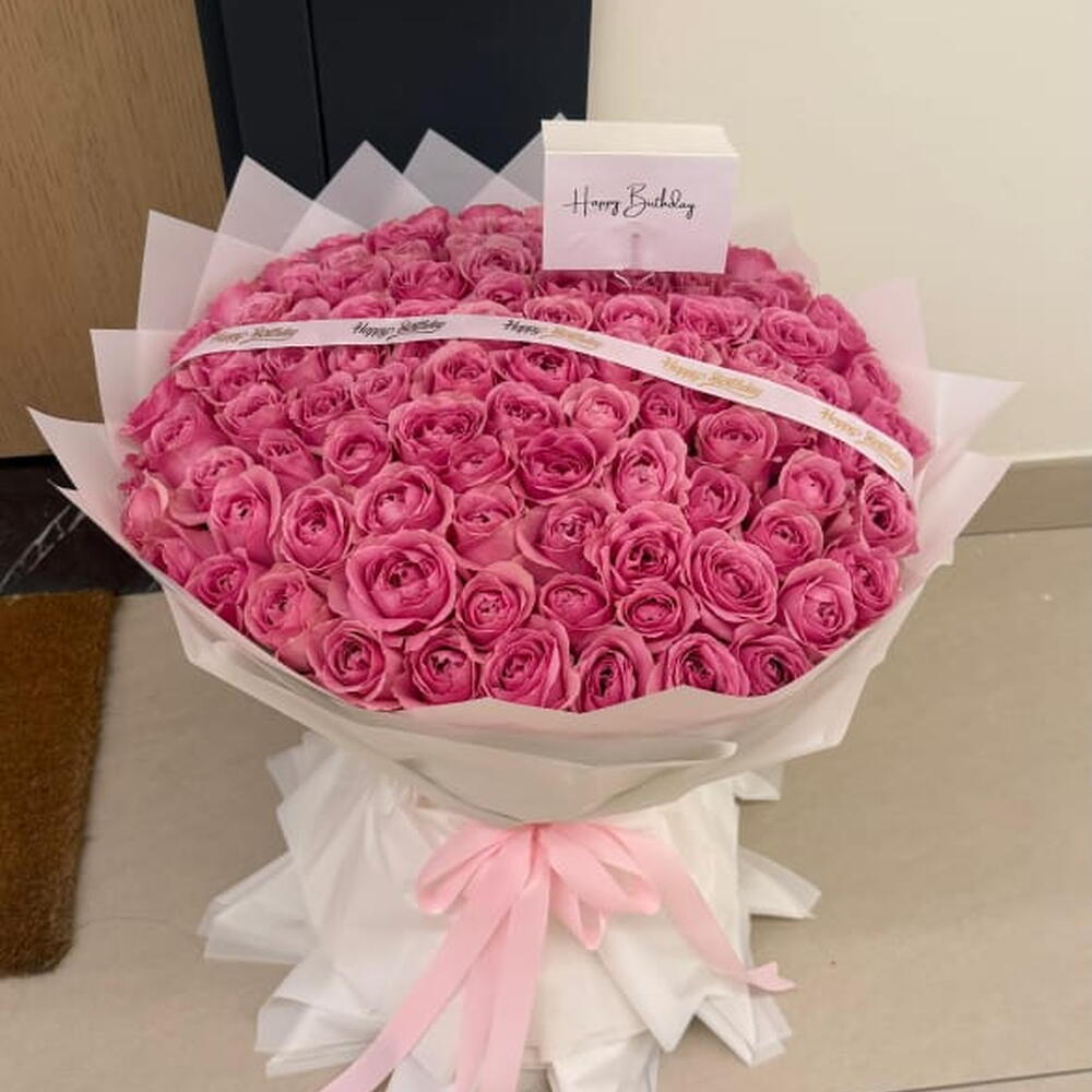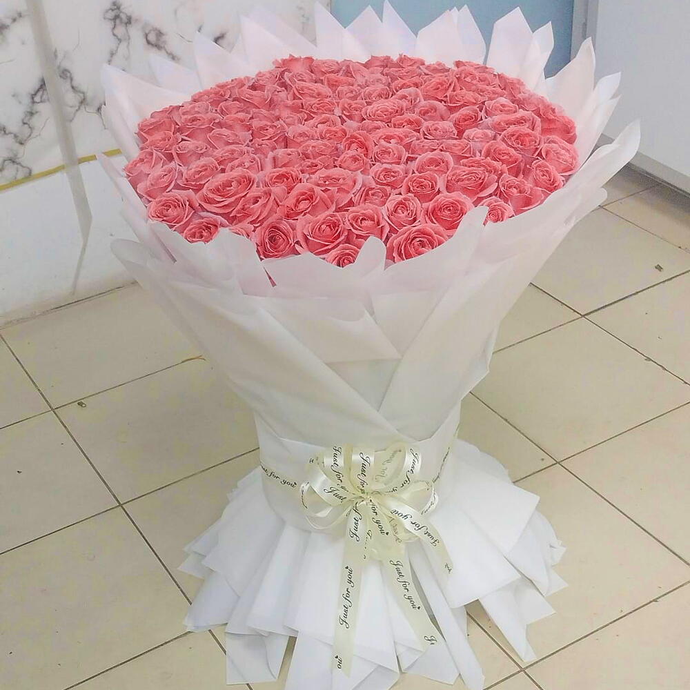 Этот букет наверняка тронет сердце получателя. Это милый способ показать свою любовь. Этот продукт состоит из 101 стебля розовых роз. УХОД ЗА ЦВЕТАМИ: Цветам предпочтительнее находиться при температуре от 8 до 22 градусов Цельсия; старайтесь избегать размещения цветов под прямыми солнечными лучами, рядом с вентиляционными отверстиями отопления или охлаждения, прямо под потолочными вентиляторами или в любом месте с высокой температурой. Вы можете снять упаковку, дать им подышать и поставить их в чистую вазу с водой.