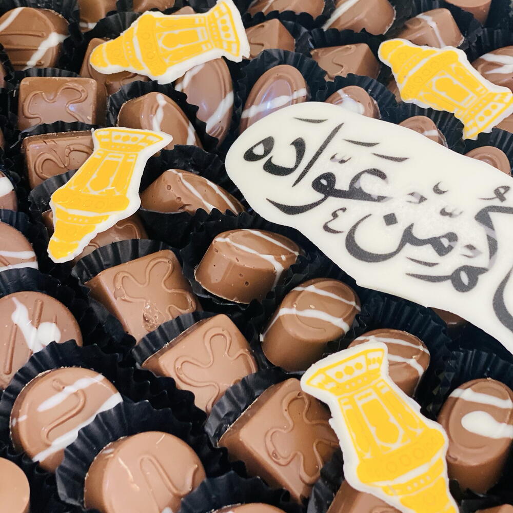 صينية شوكولا بلجيكية مع الزهور الطبيعية التي تعطيها منظر فاخر وجميل
