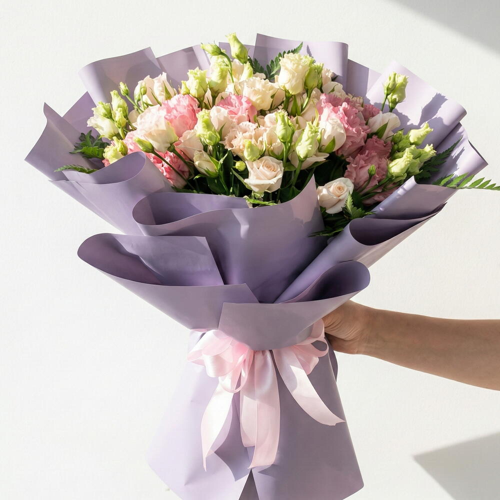 Букет Taraf — изящная пастельная цветочная композиция, созданная, чтобы выразить нежность, восхищение и утонченную элегантность. В ней сочетаются нежно-розовые мини-розы и мягкие, волнистые цветки эустомы в гармоничных оттенках, создавая романтичную и воздушную композицию. Упакован в стильную лавандовую бумагу и перевязан нежной лентой, он идеально подходит для дней рождения, юбилеев, празднования рождения малыша, подарков в знак благодарности или просто чтобы скрасить чей‑то день вечной красотой. Нежная цветовая палитра делает его особенно популярным для элегантных подарков в Дубае и по всему ОАЭ.
