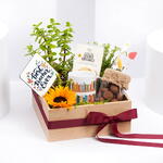 1 нефритовое дерево 1 кружка 1 столешница 1 овсяное печенье MS 1 подсолнух 2 стебля солидастера 1 банка печенья Красиво оформлено в деревянной корзине