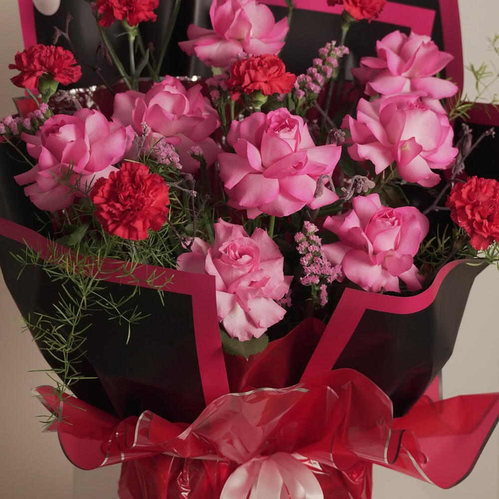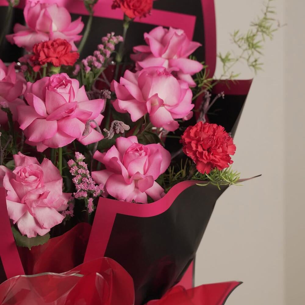 Встречайте «Thank U, Next» — букет для девушек, которые пережили самое необходимое, исцелили свои сердца, поправили короны и продолжают выглядеть ещё горячее, чем когда-либо. Розовые розы привносят нежность, романтику и любовь к себе, а насыщенные красные гвоздики добавляют пикантный настрой «я усвоила урок». Розовая статица смягчает образ пастельными облаками, а воздушный папоротник придаёт ему непринуждённую, элегантную форму. В чёрно-розовой обертке этот букет не скромен — он драматичен, уверен в себе и немного мелочен в самом милом стиле Арианы. Идеально подходит для: ✨ Сияющего расставания ✨ Празднования себя ✨ Послать сообщение без сообщения ✨ Или подарить подруге, которая наконец сказала: «Я заслуживаю лучшего» Он красивый, он сильный, он розовый — «Thank U, Next».