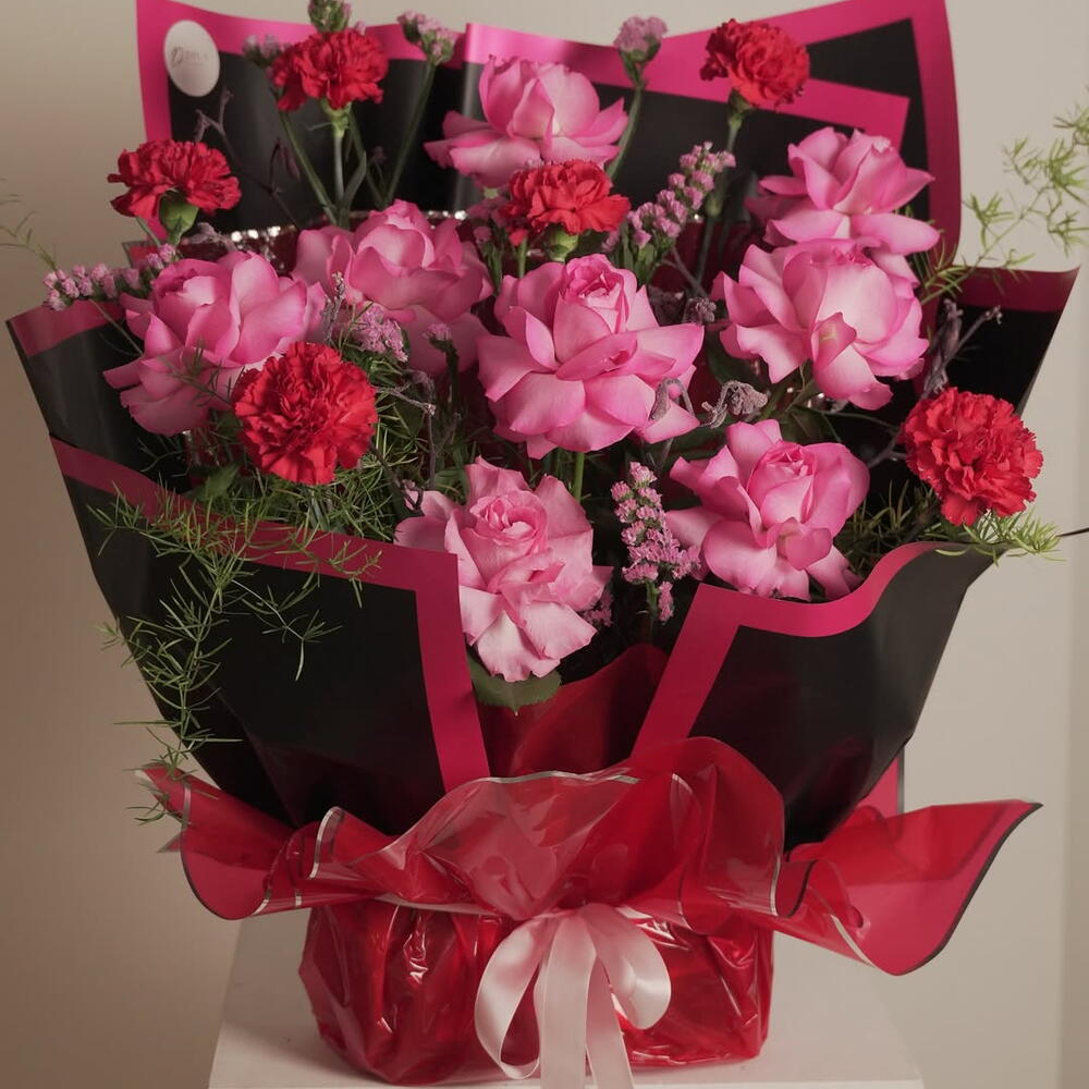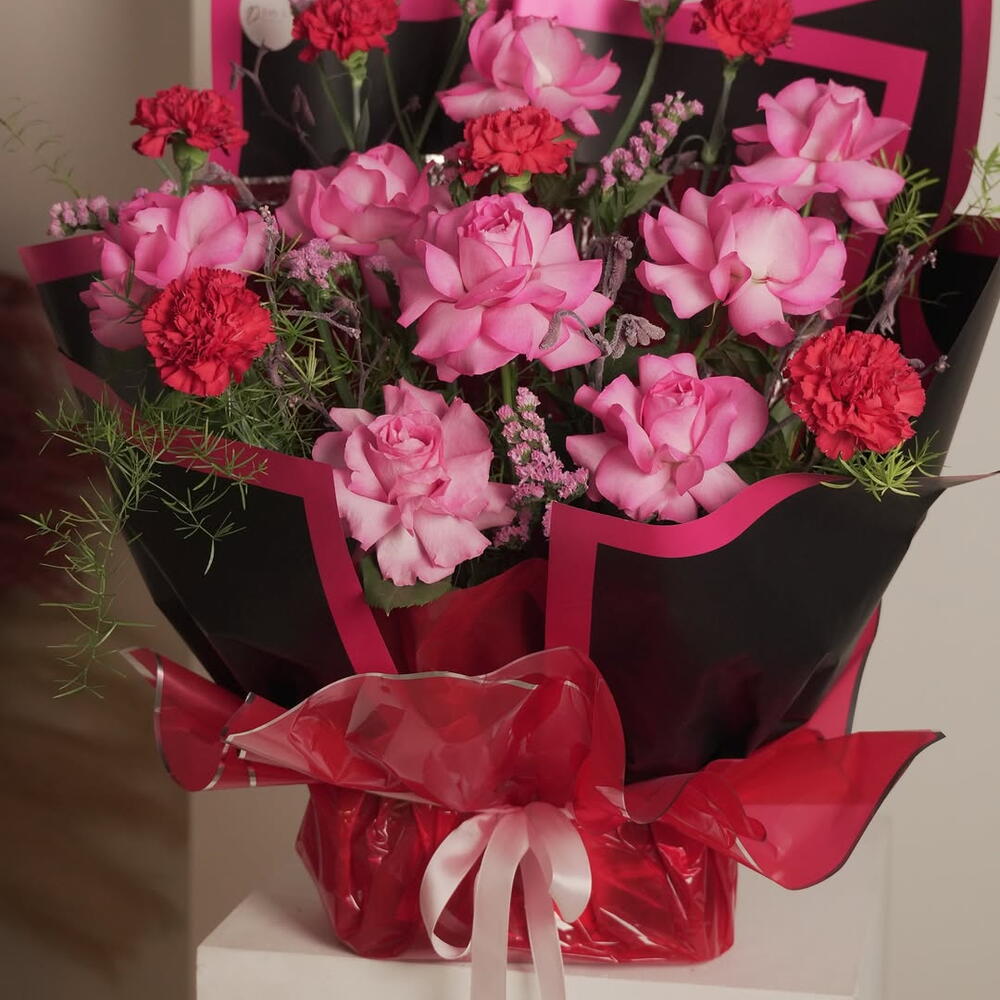 Встречайте «Thank U, Next» — букет для девушек, которые пережили самое необходимое, исцелили свои сердца, поправили короны и продолжают выглядеть ещё горячее, чем когда-либо. Розовые розы привносят нежность, романтику и любовь к себе, а насыщенные красные гвоздики добавляют пикантный настрой «я усвоила урок». Розовая статица смягчает образ пастельными облаками, а воздушный папоротник придаёт ему непринуждённую, элегантную форму. В чёрно-розовой обертке этот букет не скромен — он драматичен, уверен в себе и немного мелочен в самом милом стиле Арианы. Идеально подходит для: ✨ Сияющего расставания ✨ Празднования себя ✨ Послать сообщение без сообщения ✨ Или подарить подруге, которая наконец сказала: «Я заслуживаю лучшего» Он красивый, он сильный, он розовый — «Thank U, Next».