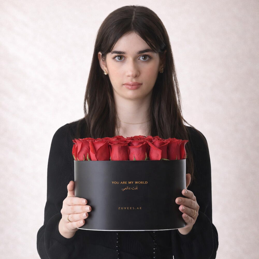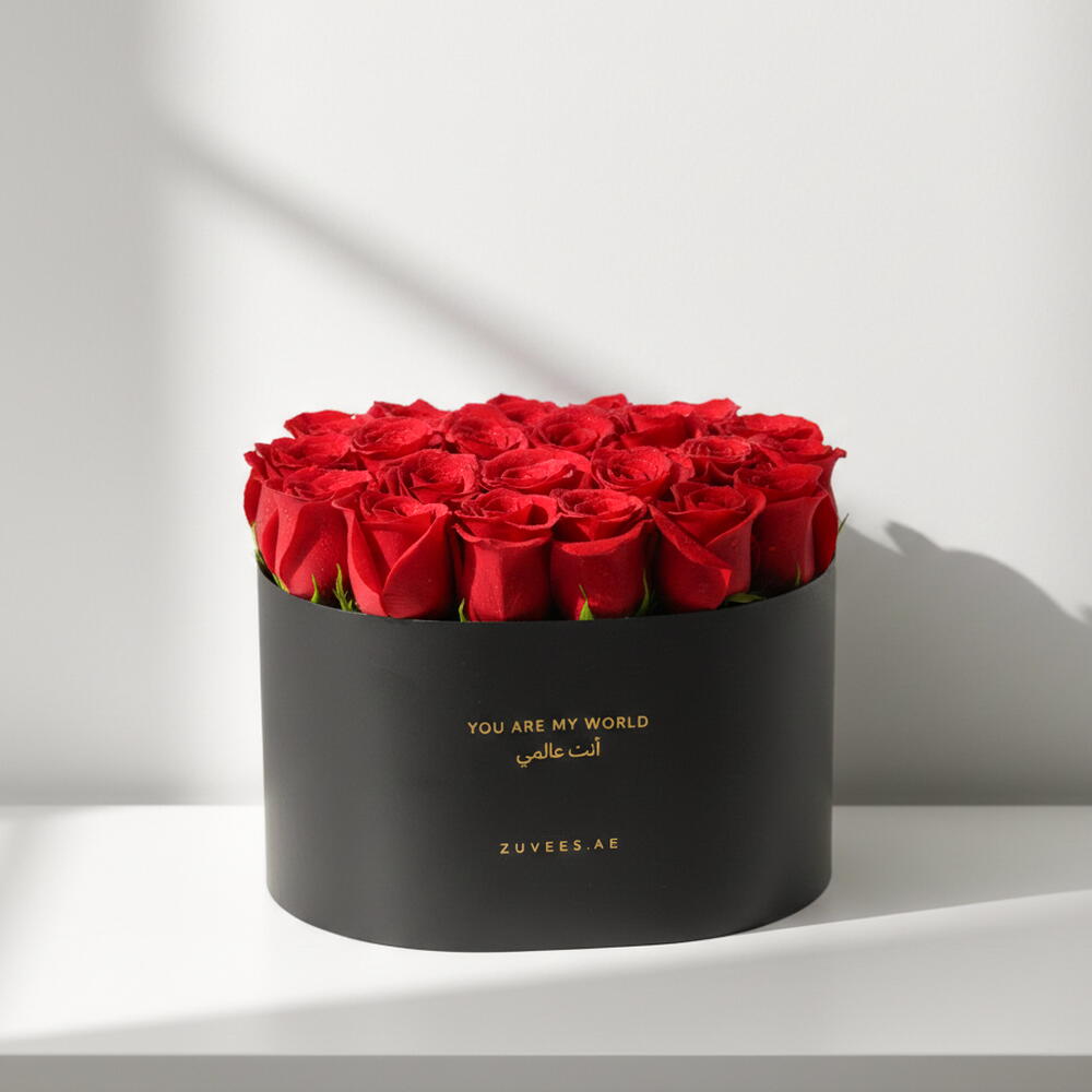 Смелое выражение любви, облеченное в вневременную элегантность, подарочная коробка Burgundy Eclipse Love Box создана, чтобы говорить от всего сердца. Эта романтическая композиция, состоящая из 22–25 премиальных красных роз, создана вручную, чтобы создать пышный, насыщенный силуэт, излучающий страсть и преданность. Представленная в овальной коробке среднего размера «Ты — мой мир», выполненной в глубоких бордовых тонах с элегантной золотой надписью, эта эксклюзивная подарочная коробка ко Дню святого Валентина передает интенсивность любви и интимность послания, предназначенного только для одного человека — Ты — мой мир.
