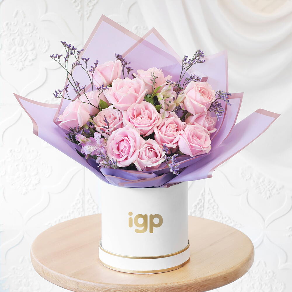 Limonium - 1 шт. Alstroemeria - 2 шт. roses - 14 шт.
