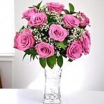 Pink rose - 11 шт. baby’s breath - 6 шт. glass vase - 1 шт.